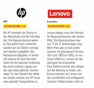 Auszug – Bewertung HP und Lenovo