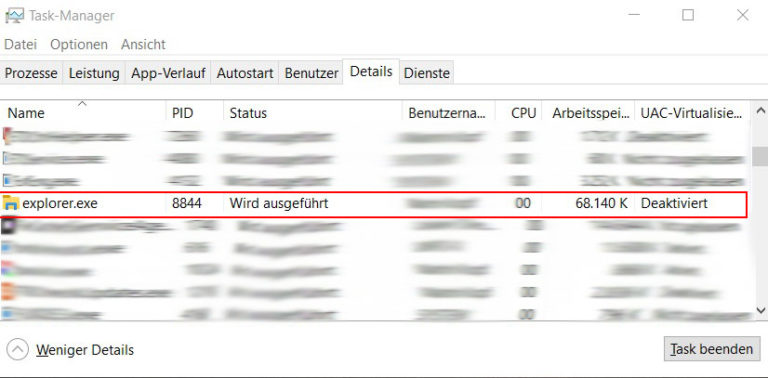 Dieser Prozess (explorer.exe) steuert und verwaltet mehrere grundlegende Funktionen des Laptops. Dazu gehören das Desktop, die Symbolleiste und etliche weitere Dinge.