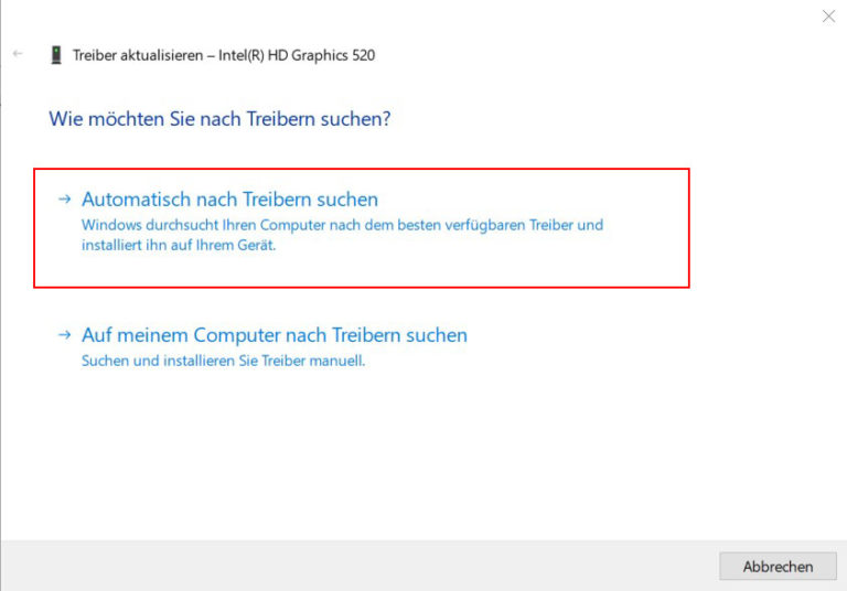 Schritt 5: Wählen Sie die Option Automatisch nach aktualisierter Treibersoftware suchen.