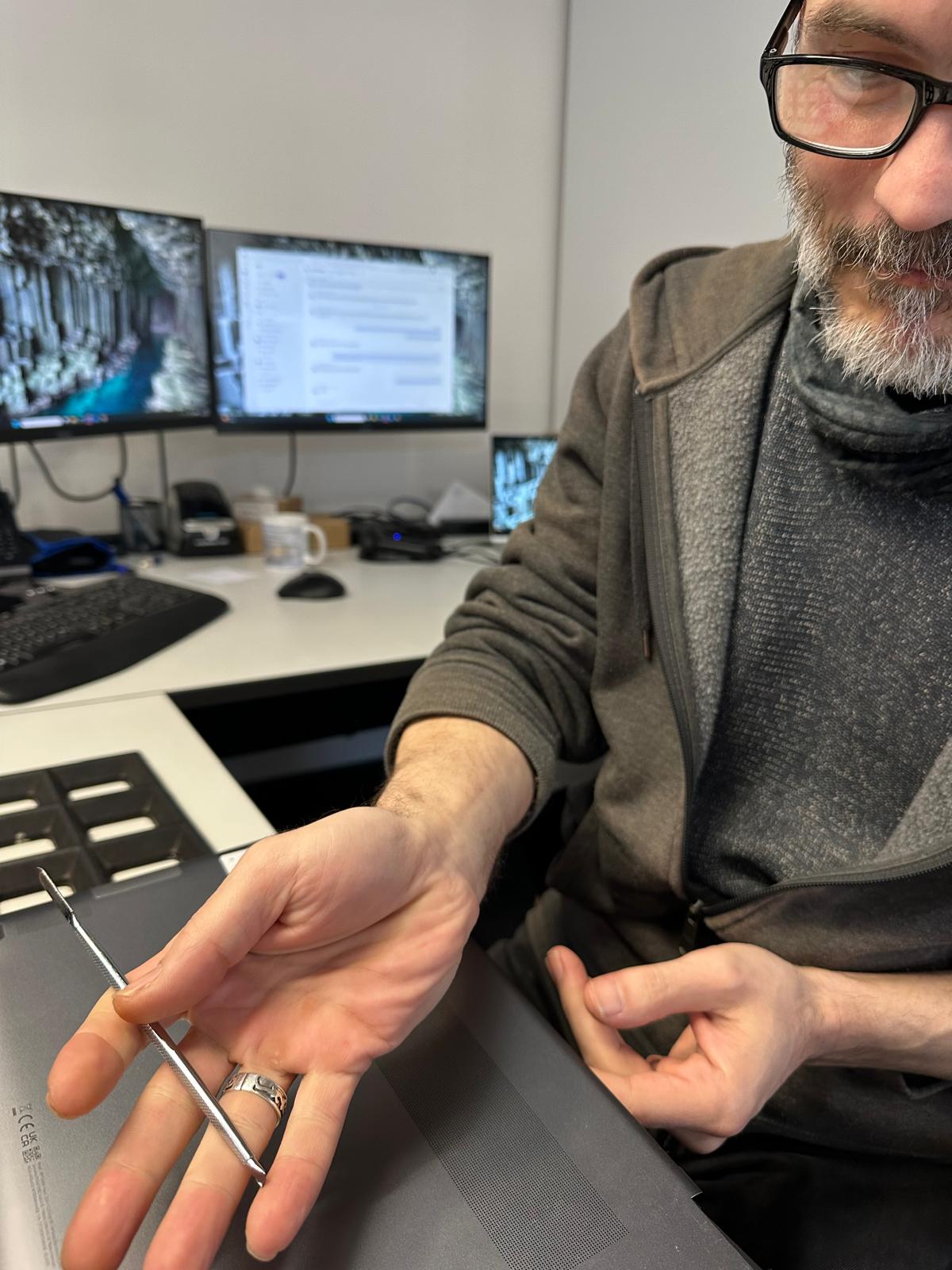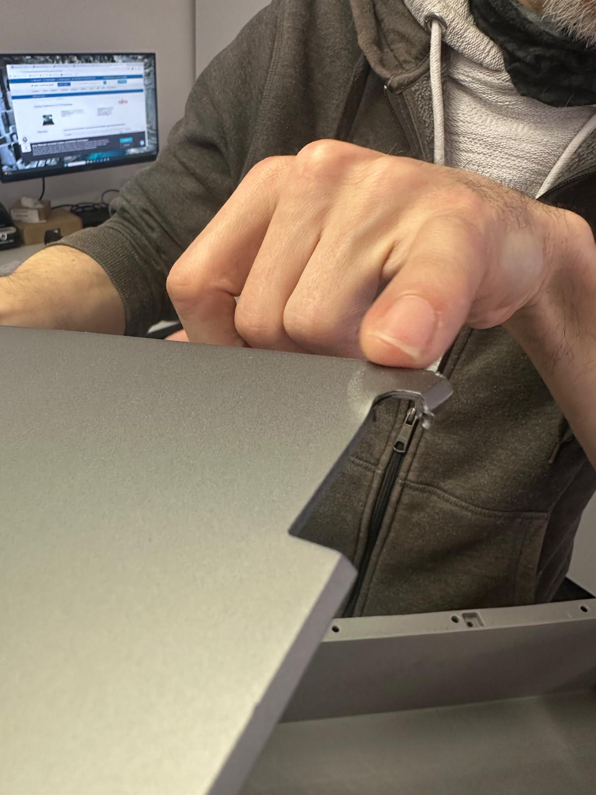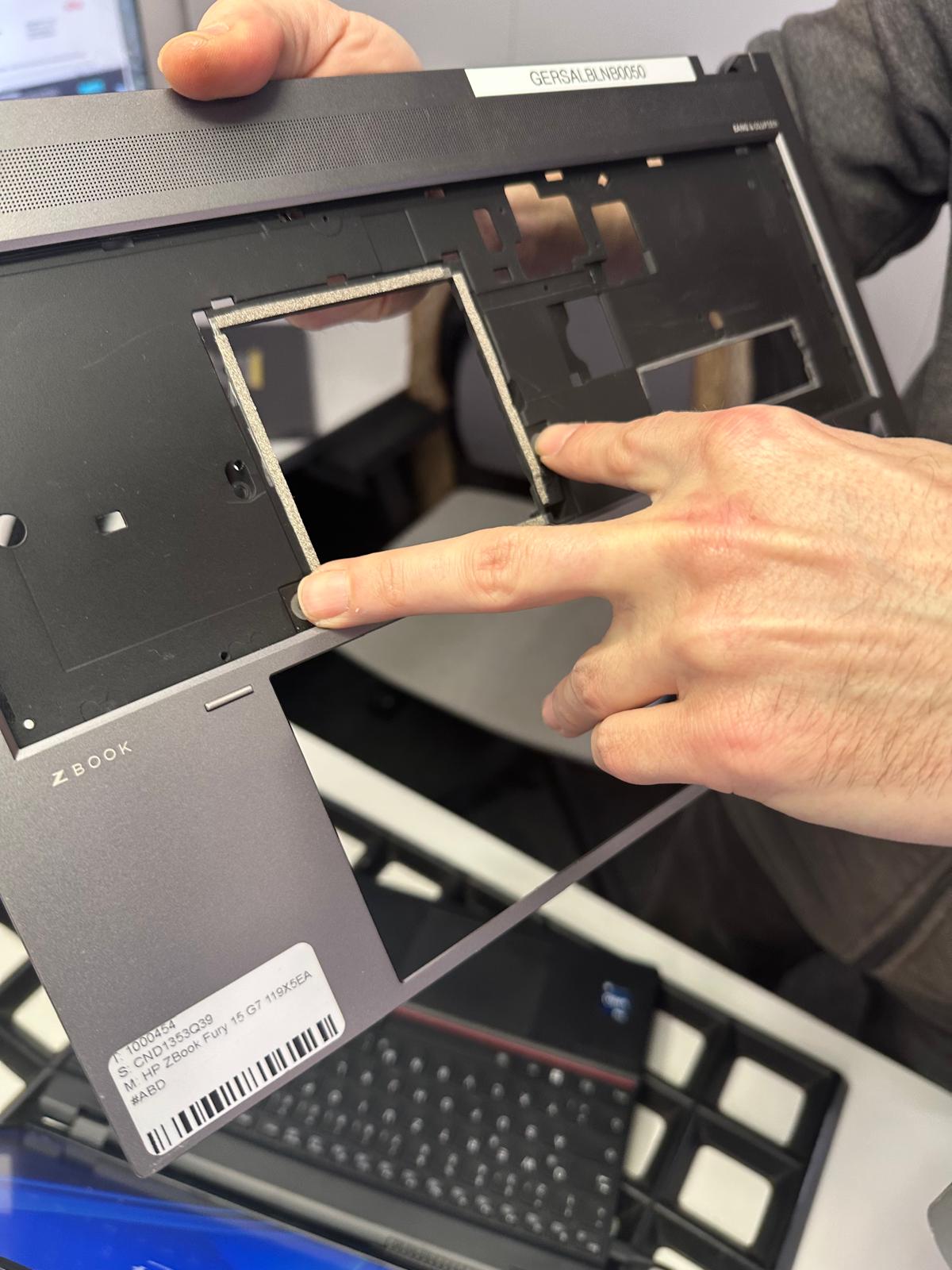 Der Displayrahmen des ZBook Fury 15 G7 ist extrem filigran, besonders an den Seiten. Zusätzlich ist er mit ungewöhnlich stark haftenden Klebestreifen (Stripes) fixiert. Auf einer Seite ließen sich diese wie gewohnt abziehen, auf der anderen Seite rissen sie ständig ab – ein Albtraum selbst für erfahrene Techniker.