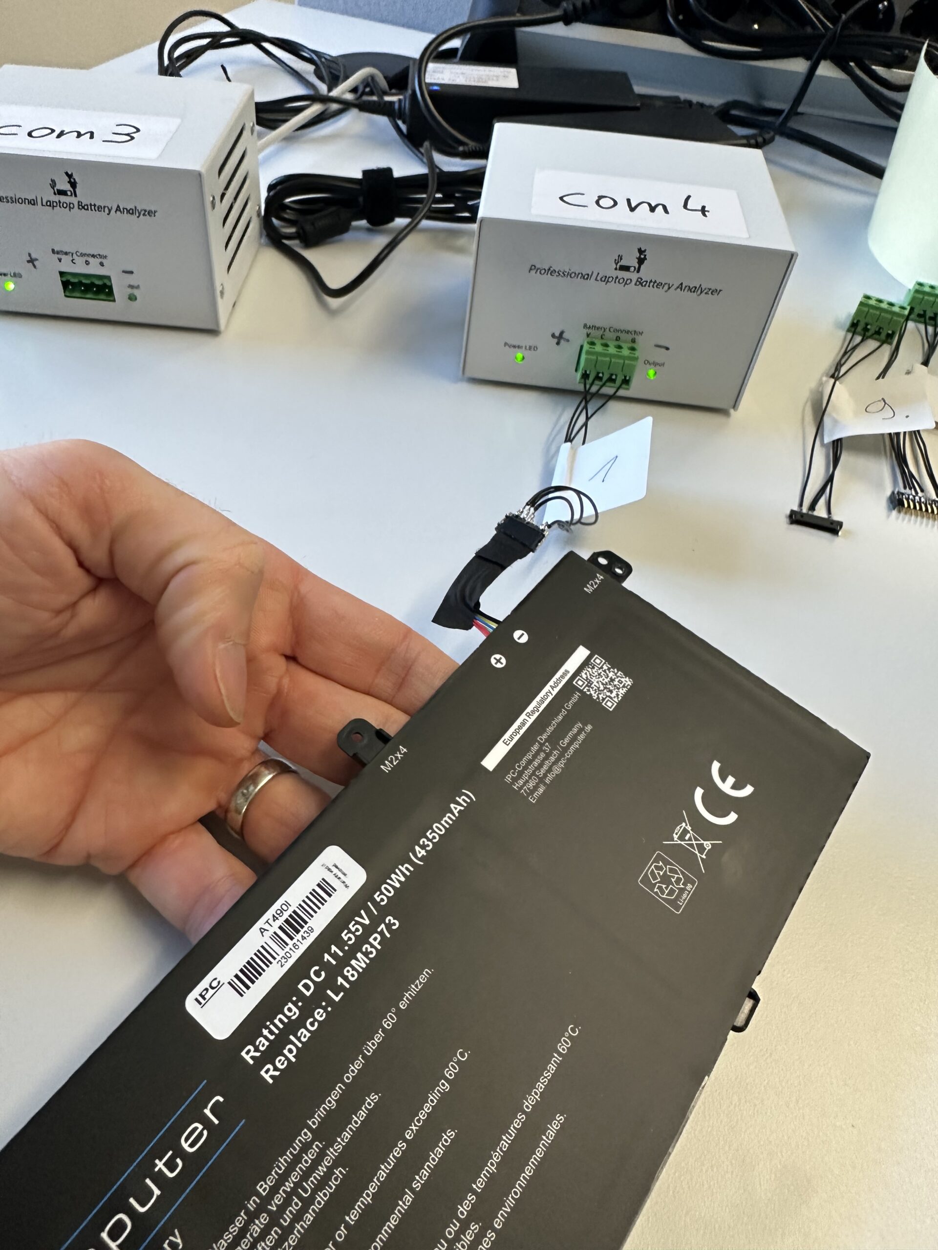 Notebook Akku Qualitätssicherung – wir prüfen alle Akkus gelegentlich auf Herz und Nieren. Nur so stellen wir sicher, dass unsere Kunden auch immer die beste Qualität geliefert bekommen.